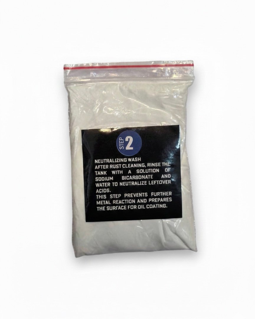 সঙ্গে থাকা জিপ-লকার প্যাকেটে থাকা পাউডারটি ট্যাংকের ভেতরে দিন। এবার এক মগ পরিমাণ পানি ঢেলে আগের মতোই ভালোভাবে ঝাঁকান। এই ধাপটি রাসায়নিকের প্রভাব নিরপেক্ষ করে এবং ভবিষ্যতে মরিচা ধরার ঝুঁকি কমায়। ঝাঁকানো শেষ হলে আবার প্রেশার গানের মাধ্যমে ভালোভাবে ধুয়ে ফেলুন। এরপর ট্যাংককে কমপক্ষে ১ ঘণ্টা রোদে রেখে পুরোপুরি শুকিয়ে নিন যাতে কোনো পানি না থাকে।